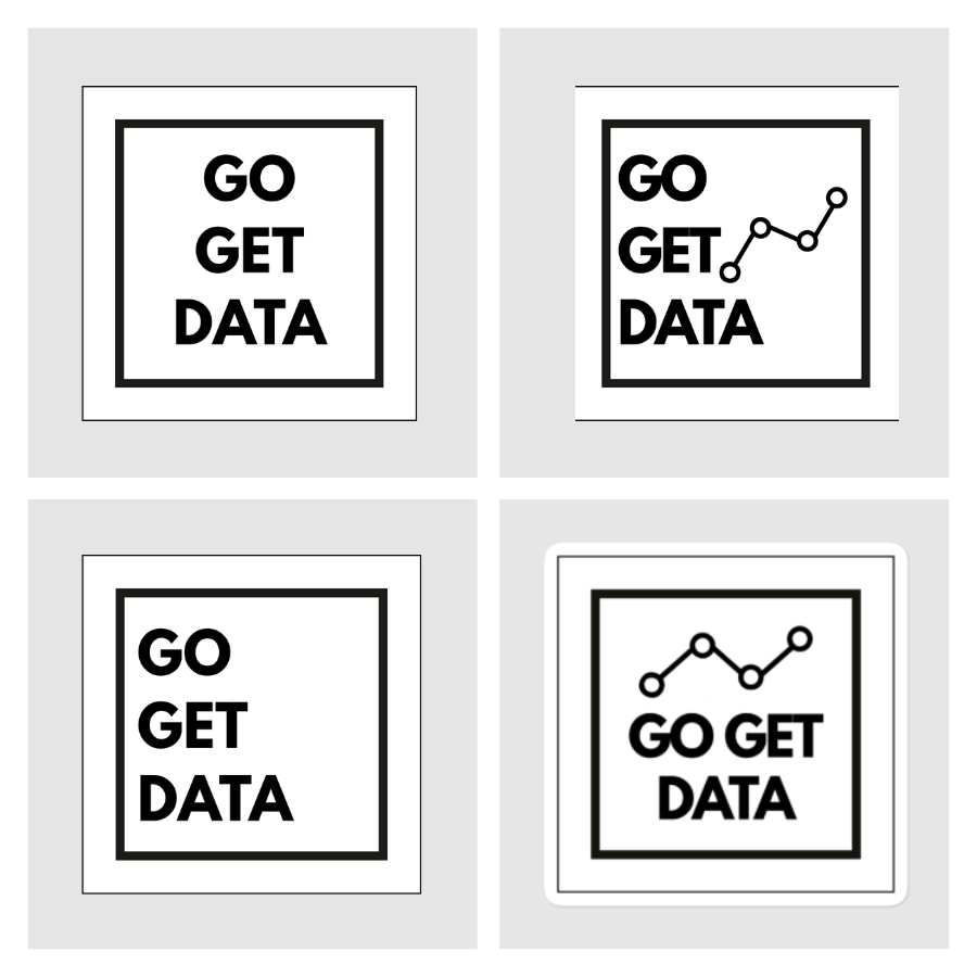 The Go Get Data Vinyl Stamp Sticker Bundle includes all four of our premium GGD logo styles: Original, Stacked, MT, and Uphill in one sleek set. Just pick your color, and we’ll deliver a smooth, high-contrast vinyl sheet made for clarity, creativity, and everyday style.