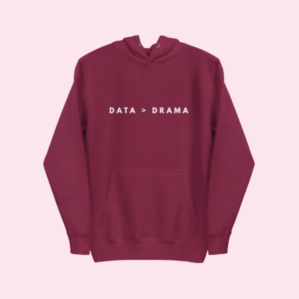 Stay cozy and unbothered. Wear the mindset: Data > Drama.