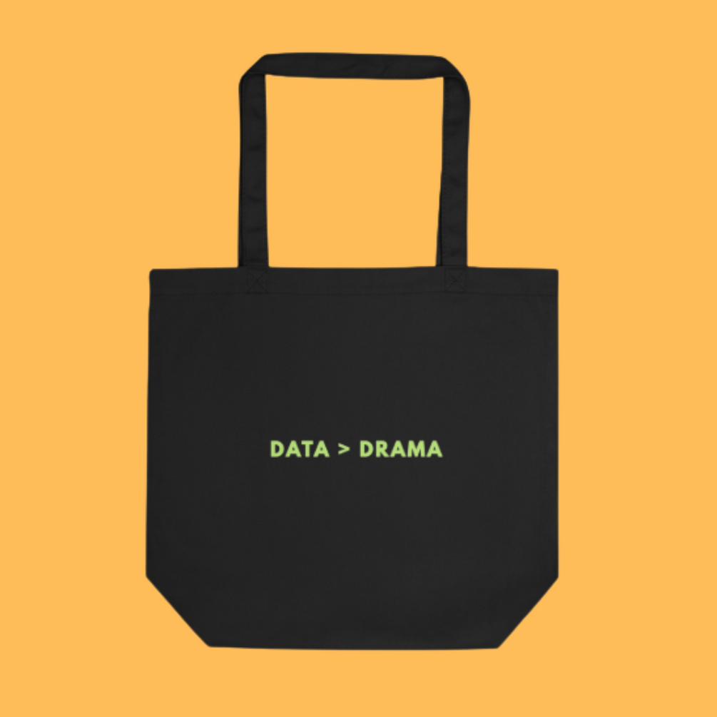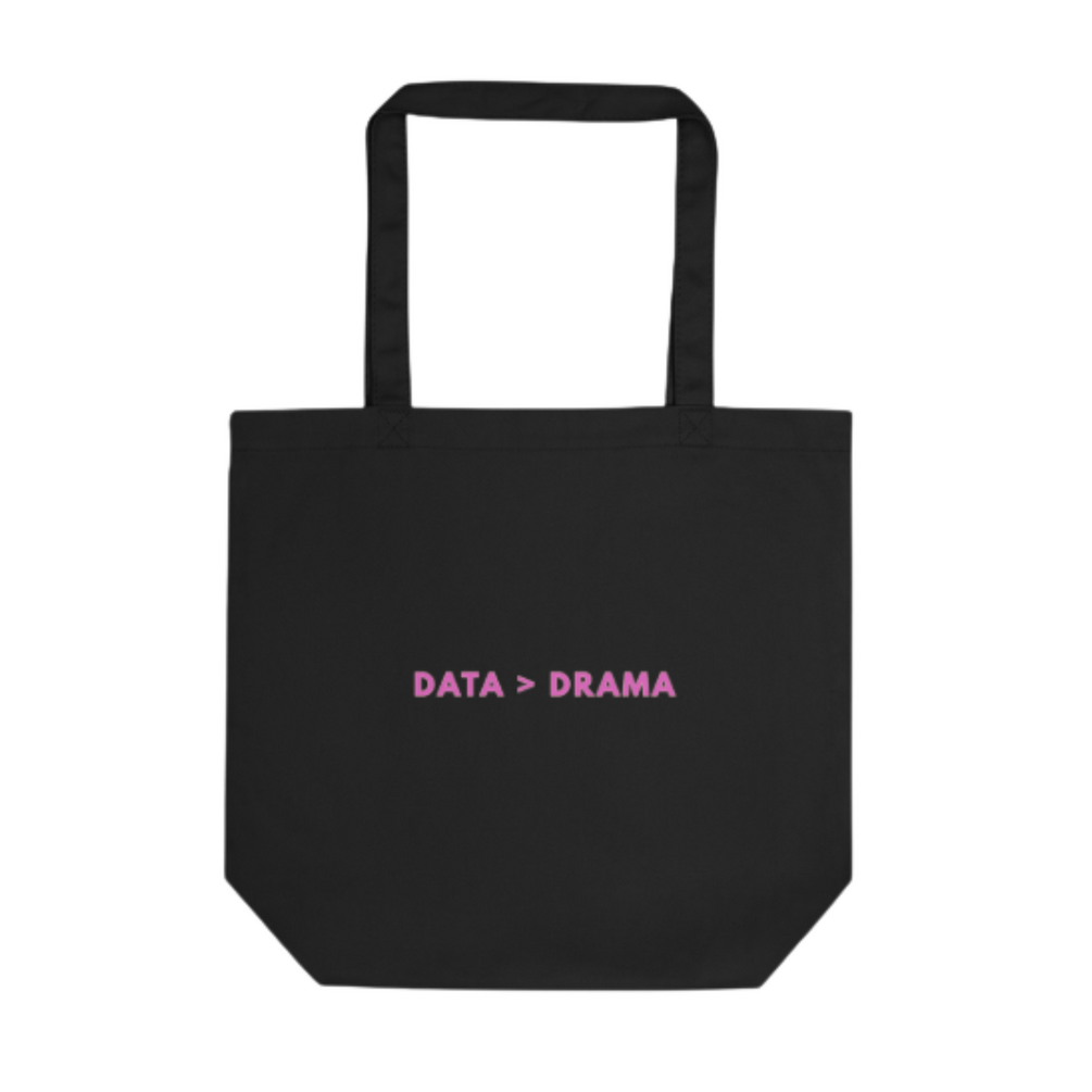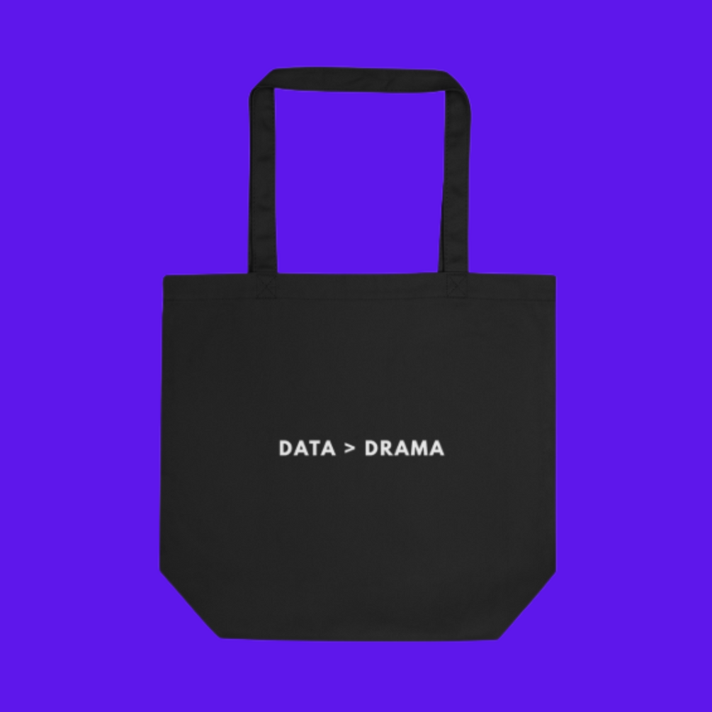 The No Drama Tote features our bold slogan “Data > Drama” printed on both sides; this eco-friendly bag reps streetwear simplicity and a love for logic.